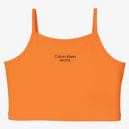 Cool black top for teen girls by Calvin Klein Jeans, made in soft and stretchy jersey. The American brand's bold black logo lettering decorates the front. In an on-trend cropped fit, this stand-out top has narrow shoulder straps and a feminine square neckline. This product is made with 70% sustainable materials including 66% Lenzing™ ECOVERO™ fibres.