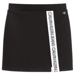 Short grey skirt by Calvin Klein Jeans for teen girls, for a contemporary look. Soft, stretchy and comfortable, it has the brand's logo tape in grey, black and white down the front, with an embroidered black CK logo near the elasticated waistband.