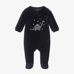 Light grey velour babygrow for boys by French brand Carrément Beau, made in soft organic cotton blend. Gentle against delicate skin, it has a quirky textured raccoon graphic printed on the front. It fastens with convenient poppers on the front for quick and easy dressing.