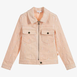 The girls blue denim jacket by Chloé offers a classic style with a modern twist. Crafted from soft, mid-weight cotton denim with a touch of polyester and elastane for comfort, it features shiny gold-tone branded popper fastenings. The jacket's washed and worn look adds a laid-back appeal, perfect for layering in spring and summer. Limited quantities available, making it a must-have addition to any stylish wardrobe. Ideal for a casual outing or a day at the park.