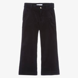 Trendy brown cotton trousers for girls by Chloé, made from a soft and velvety corduroy fabric. Wide leg for a retro look, these trousers have four pockets, with one back pocket subtly embroidered with the brand's logo and iconic flower motif. They fasten with a branded popper and zip on the front and have useful belt loops on the waist.
