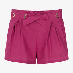 Girls navy blue linen shorts by Chloé feature a soft and lightweight fabric, making them ideal for spring and summer. They showcase a partially elasticated waistband for easy wear, smart pleated front, and a fabric tie with large gold-tone eyelets, adding a touch of elegance. The tonal embroidered logo on the back adds a discreet designer touch. Last chance to buy these stylish shorts, available in limited quantities.