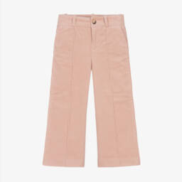 Girls navy blue wide-leg corduroy pants by Chloé offer a luxurious style with a subtle tonal logo on the back waist. Crafted from soft organic cotton, these trousers feature a faux tortoiseshell button and zip fastening, along with an adjustable waist for a great fit. Ideal for autumn and winter, they provide warmth and comfort, making them a lovely addition to any wardrobe. Limited quantities available, so seize the chance to add this elegant piece to your collection.