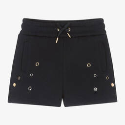 Girls pale pink cotton shorts by Chloé, crafted from mid-weight organic cotton jersey. Featuring iconic gold and silver eyelets below the front pockets, these shorts have a comfortable drawstring waist with engraved branding on the gold caps. Tone-on-tone embroidery on the back highlights the label's signature emblem. Perfect for casual wear, these shorts are a stylish and practical addition to any wardrobe. Limited quantities available, last chance to buy.