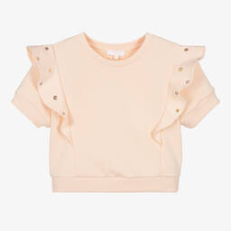 Pink cotton sweatshirt for girls by Chloé is crafted from soft organic jersey, emphasising comfort and sustainability. Featuring a charming appliqué logo in ivory, this mid-weight top offers both style and ease with practical popper fastenings. Ideal for the spring and summer seasons, it ensures a cosy, fashionable wear for little ones. Limited quantities available, so seize the opportunity to add this luxurious French touch to a wardrobe today.