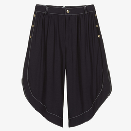 Stylish beige culottes for teen girls by luxury French designer Chloé, made in a soft viscose twill. With a lovely tulip hem and white stitching, they fasten with a zip and gold logo-engraved popper. The concealed side pockets fasten with matching gold poppers and there is a discreet signature logo embroidered on the back.