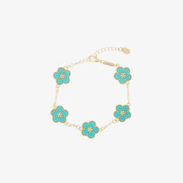 The girls flower-adorned bracelet by David Charles is a charming piece designed to delight. Featuring a delicate gold chain with five mint-hued flowers, it secures comfortably with a lobster clip, ensuring both style and safety. This lovely bracelet adds a touch of elegance to any outfit, making it a perfect accessory for special occasions or everyday wear. With limited quantities available, don't miss the last chance to own this exquisite piece.