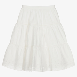 Ivory tulle midi skirt for girls by luxury French brand Bonpoint, lined in silky acetate for comfort. The voluminous tulle overlay has an iridescent polka dot pattern all-over for a special party look, and a stretchy waist for the best fit.