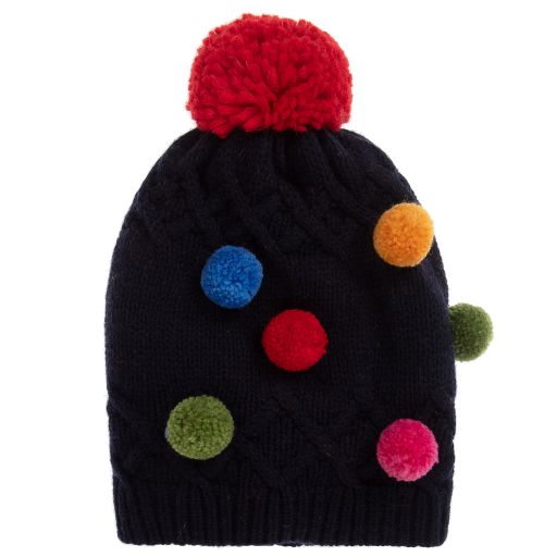 GreviNavy Blue Wool Pom-Pom Hat