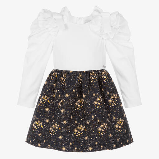 Jessie and James LondonGirls Creamy Ruffled Cotton Dress