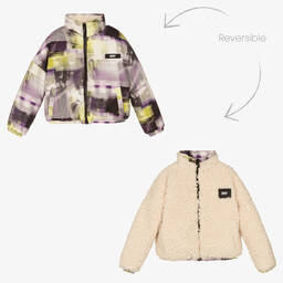 Black, hooded puffer jacket for girls by DKNY. Warmly padded, it has a contrasting logo inner zip fastening with branded popper closures and concealed side seam pockets. Casual and easy to wear, it has stretchy ribbed cuffs and a silky, logo-inspired lining that provides an extra layer of warmth.