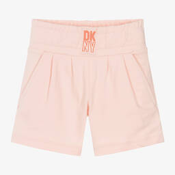 Girls green cotton jersey shorts by DKNY offer a casual, comfortable wear, featuring a super soft brushed feel. The shorts have a dark green logo embroidered on the wide elasticated waistband and printed branding on the back. Subtle pleated detailing and useful slanted pockets add practical and stylish touches. Limited quantities available, making this your last chance to buy these charming shorts.