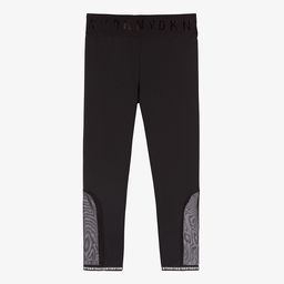 Girls orange leggings by DKNY. Silky and stretchy, they have a wide, logo-branded stretchy waistband and mesh panels on the legs.