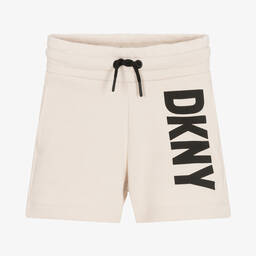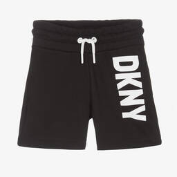 Bright yellow shorts for girls by DKNY, made in comfortable, mid-weight cotton jersey. Making an instant statement, they have a bold white logo print down one leg and concealed side pockets. The waistband is comfortably elasticated and has drawstring ties to adjust the fit.