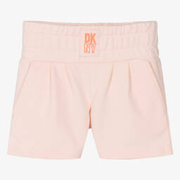 Teen girls green cotton shorts by DKNY feature a sea green hue and a dark green logo embroidered on the wide elasticated waistband, with a branded design printed on the back. These shorts are made from soft cotton jersey with subtle pleated detailing on the front and practical slanted pockets. Perfect for casual wear, they offer both comfort and style. Limited quantities available, so it's the last chance to buy this stylish piece.