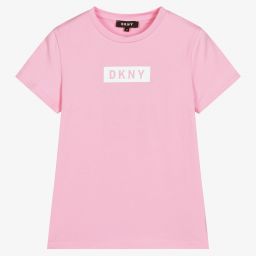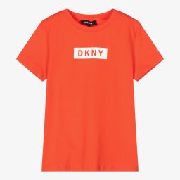 Directly inspired by the adult collection, a yellow organic cotton T-shirt for teen girls by DKNY, with a silver logo print. Soft and stretchy, this mid-weight T-shirt has a small rounded neckline and short sleeves.
