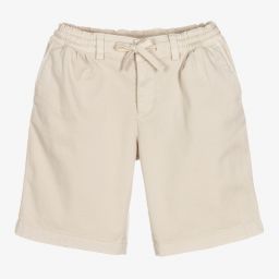 Smart navy blue cotton oversized fit shorts for boys by luxury brand Dolce & Gabbana. Made in soft, mid-weight twill with a slight stretch, they have a drawstring on the comfortable elasticated waist and four pockets. The designer's embroidered crossover DG logo can be found under one back pocket.