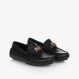 Sleek, black patent leather loafers for girls by Italian designer Dolce & Gabbana, with colourful tartan check print leather panel. The distinctive metal DG logo branding in silver finish can be seen on the heels for a little luxury touch. Lined in soft leather with a lightly padded insole for comfort, the chunky rubber lug soles give these classic loafers an on-trend vibe.