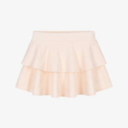 Mid-blue wash denim skirt for girls from Italian luxury brand Dolce & Gabbana, with a delicate red lace trim along the hem. In a chic noughties style, this slightly distressed mini skirt features a small black logo tab on the front coin pocket and a shiny silver logo badge on the back. Fastening with a zip and button, they are finished with an adjustable waist, ideal for growing children.