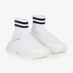 For teen boys, a pair of bright blue sock trainers by luxury Italian designer, Dolce & Gabbana. Taking inspiration from the brand's sports collection, these comfortable high top trainers are made in a stretchy mesh knit, with white striped trim around the ankle and light reflective logo print on the sides. The leather-lined insole is lightly cushioned and the eye-catching rubber outsole is embossed with DG crossover logos for a cool designer finish.