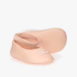Baby girls white pre-walker shoes by Dolce & Gabbana. Made in super soft leather, with a matt white DG logo on the front, they fasten with a velcro strap.
