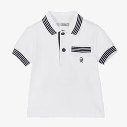 The ivory and navy striped polo shirt for boys by Dr. Kid offers a charming nautical style perfect for spring and summer. Crafted from soft cotton knit, this short-sleeved polo features navy blue stripes and natural wooden buttons for a touch of elegance. Ideal for a casual outing or a special occasion, this polo is both stylish and comfortable. Limited quantities available, so don't miss the chance to add this versatile piece to the wardrobe.