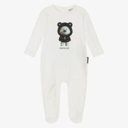 Grey marl babygrow for girls by Dr. Kid, knitted in a soft wool and cashmere blend. It has a white woven collar, trimmed in red embroidery detailing. There is a sweet little bird motif on the front, with red and grey shoes on the feet, each decorated with pretty red flowers.