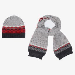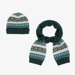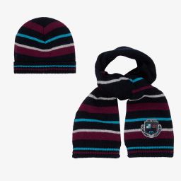 A delightful Navy Blue knit beret and scarf set for younger girls by Dr. Kid, crafted in a soft cotton and wool blend. Warm and snug, these pieces feature playful large red and pink dots. The beret has a ribbed brim for a comfortable fit, topped with a charming pom-pom. The matching scarf includes pom-poms on the ends and a convenient slit for crossover wearing. Limited quantities available – great choice for adding a fun touch to any outfit.