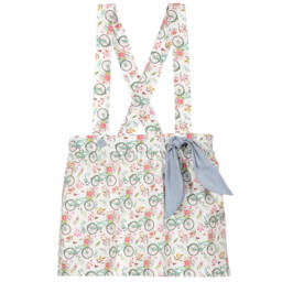 Girls blue stripe skirt with cherries by Dr. Kid offers a charming touch to any wardrobe. Crafted from soft cotton seersucker, this delightful piece features embroidered cherries near the hem and elegant scalloped edging. The lightweight cotton lining and stretchy waistband ensure comfort and ease of wear. Perfect for spring and summer outings, it sits above the knee and is available in limited quantities. Last chance to buy this European-made treasure.