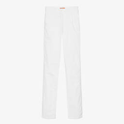 White cotton trousers for girls by Dr. Kid are crafted in soft stretch twill, offering both style and comfort. Featuring gently flared legs and practical front and back pockets, these trousers are completed with an adjustable waistband and a neat button and zip fastening. Perfect for accessorising with a favourite belt, these trousers are ideal for casual outings or special occasions. Limited quantities available, so don't miss the chance to add this versatile piece to a girl's wardrobe.