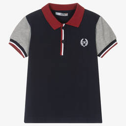 Boys navy polo shirt by Dr. Kid is crafted in soft, lightweight cotton knit, perfect for spring and summer wear. Featuring elegant ivory trims and charming wooden buttons on the chest, it offers a refined look suitable for both casual outings and more formal occasions. This smart top is a staple for the young gentleman's wardrobe, providing comfort and style. Limited quantities available, so seize the opportunity to add this timeless piece to the collection.