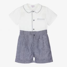 Casual navy cotton shorts set for boys by EA7 Emporio Armani features a soft jersey T-shirt adorned with a bold logo print, delivering a stylish statement. The mid-weight jersey shorts include practical side seam pockets and an elasticated waist with an internal drawstring for a customised fit. Perfect for warm days, this set combines comfort and fashion effortlessly. Limited quantities available, making it a must-have for the season.