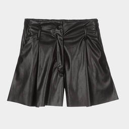 Brown shorts for girls by Italian designer Elsy, made in lightweight faux leather. They are pleated on the front and have a removable sash belt that ties in a bow. They fasten with a button and zip and have useful side pockets.