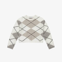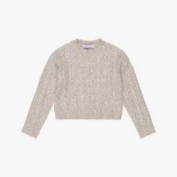 This cream jumper for teen girls by Elsy offers a blend of style and comfort. Crafted in a cosy viscose mix, it showcases a delightful cable knit pattern with black grosgrain bows for a sophisticated touch. Ribbed cuffs and hem provide a snug fit, making it a perfect choice for chilly days. Limited quantities available, so seize the chance to add this elegant piece to your wardrobe.
