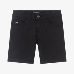 Unmistakably Emporio Armani, these navy blue shorts for baby boys have navy blue and white embroidered logo trim on the sides. A comfortable and casual style, they are made in soft double-faced cotton jersey and have an elasticated waistband for easy pull on.