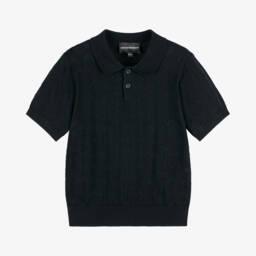 Boys beige knitted polo top by Emporio Armani blends fine cotton and viscose for a soft, luxurious feel. Featuring a classic button-down front, the top is adorned with a subtle tonal Eagle logo jacquard pattern. Ideal for spring and summer wear, this polo top offers a perfect combination of comfort and style for young boys. With limited quantities available, don't miss the chance to add this elegant piece to your collection.