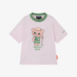 The ivory lion T-shirt for junior boys by Emporio Armani is crafted from soft organic cotton jersey, ideal for the Spring/Summer season. This charming piece from the Manga Bear Capsule collection showcases a playful golfing lion print and a distinctive branded tab on the side seam. A relaxed fit and a green logo on one sleeve add to its appeal, making it perfect for casual outings. Limited quantities available, so secure this delightful T-shirt while you can.
