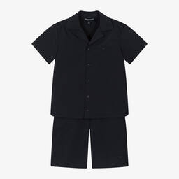 Boys ivory shirt and shorts set by Emporio Armani features a smooth, crisp cotton blend with added stretch for comfort. The short-sleeved shirt has a revere-style collar, front button fastenings, and an embroidered white Eagle logo on the chest for a signature look. The shorts include an elasticated waist, two side seam pockets, and two buttoned pockets on the back. Limited quantities available – last chance to buy this stylish set.