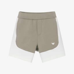 Boys blue and ivory contrast shorts by Emporio Armani are crafted from a super soft cotton-blend jersey. They feature an elasticated waistband for easy dressing and comfort, along with discreet on-seam pockets on the front. The iconic embroidered ivory Eagle logo adds a touch of elegance. Perfect for spring and summer adventures, these stylish shorts offer both practicality and fashion. Limited quantities available, making this a last chance to buy these distinctive shorts.
