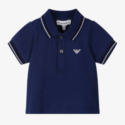 Teen boys navy blue polo shirt by Emporio Armani features bold EA logo initials embroidered on the raglan short sleeves and a ribbed stripe collar with ivory and beige accents. Made from soft cotton jersey, this shirt offers a boxy, relaxed fit and branded button fastenings. Perfect for casual wear, this is your last chance to buy as quantities are limited.