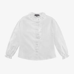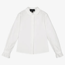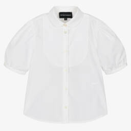 Lilac pink cotton blouse for teen girls by Emporio Armani, signed with the brand's iconic Eagle logo on the hem. Made in soft lightweight piqué, this unique piece combines sporty and stylish with a silky pleated back and a lightly ribbed polo collar. A single button fastening can be seen on the back for a neat finish.