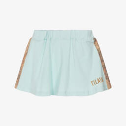 Exclusive to Childrensalon, a dark beige Geo map print skirt for girls by Alviero Martini, with pink detailing. Made in comfortable viscose jersey and fully lined, it has a frill around the hemline and an adjustable, elasticated waistband.