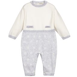 An adorable navy blue romper for baby boys by Everything Must Change, with a cute brown monster appliqué on the front. Cosy and comfy, it is made in a soft jersey knit with a warm fleecy inside. There is little patch pocket on the front, with easy-fastening poppers down the front and between the legs.