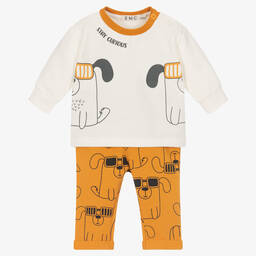 This ivory and beige trouser set for younger boys by Everything Must Change is crafted in soft cotton jersey. The casual top features ribbed trims, popper fastenings on one shoulder, and a charming chest pocket with embroidered details and pop-up ears. It pairs beautifully with the brown beaver print joggers, which have a fleecy interior and an elasticated waistband for comfort. Limited quantities available, making it a last chance to buy.