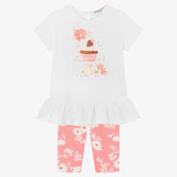 Casual and relaxed, this cotton leggings set for girls is by Italian brand Everything Must Change, made in stretchy jersey. The white T-shirt has positive words in shiny gold and pink flowers, with pretty, frilled sleeves. The pink leggings have a comfortable, elasticated waist, just right for little tummies.