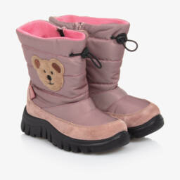 Boys black teddy bear winter boots by Falcotto by Naturino are crafted from smooth, waterproof fabric with stylish suede leather accents. Perfect for keeping small feet dry in the rain or snow, the boots feature a warm fleece lining and a robust non-slip rubber sole for excellent grip on slippery surfaces. A side zip and front toggle ensure easy wear and a snug fit, while a charming teddy bear appliqué adds a playful touch. Limited quantities available, so act fast.