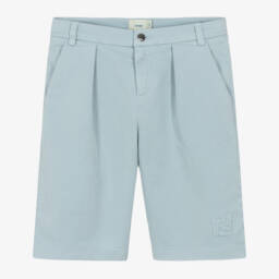 Grey shorts for baby boys by luxury Italian brand Fendi, made in a soft wool and cashmere blend. Lined in silky viscose, they have faux front and back pockets and a useful adjustable waist. They fasten with a button and have a white embroidered FF logo on one leg.