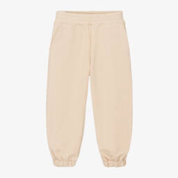Comfortable black joggers for boys and girls by luxury Italian brand, Fendi. Made in mid-weight cotton jersey, they have sporty stripes on the side seam in green, white and yellow, with brown FF logo trim at the ankle. The waistband has an adjustable drawstring for a good fit and they have useful pockets on the front and back.