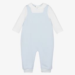 Pink and ivory bodyvest and dungaree set for baby girls by luxury Italian brand Fendi, made in soft cotton jersey. The gorgeously soft pale pink dungarees have an embossed logo on the front, with popper fastened shoulder straps and poppers between the legs. The lovely ivory bodyvest has an embroidered pink logo on the front and fastens on the back and between the legs.