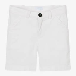 Smart-casual dark ivory shorts for boys by Spanish brand Foque. They are woven in lightweight cotton twill, with a hint of stretch for added comfort. Fastening with a button and zip on the front, they have an adjustable waist for an ideal fit, with four useful pockets. The back is trimmed with a leather-look logo tab for a designer finish.